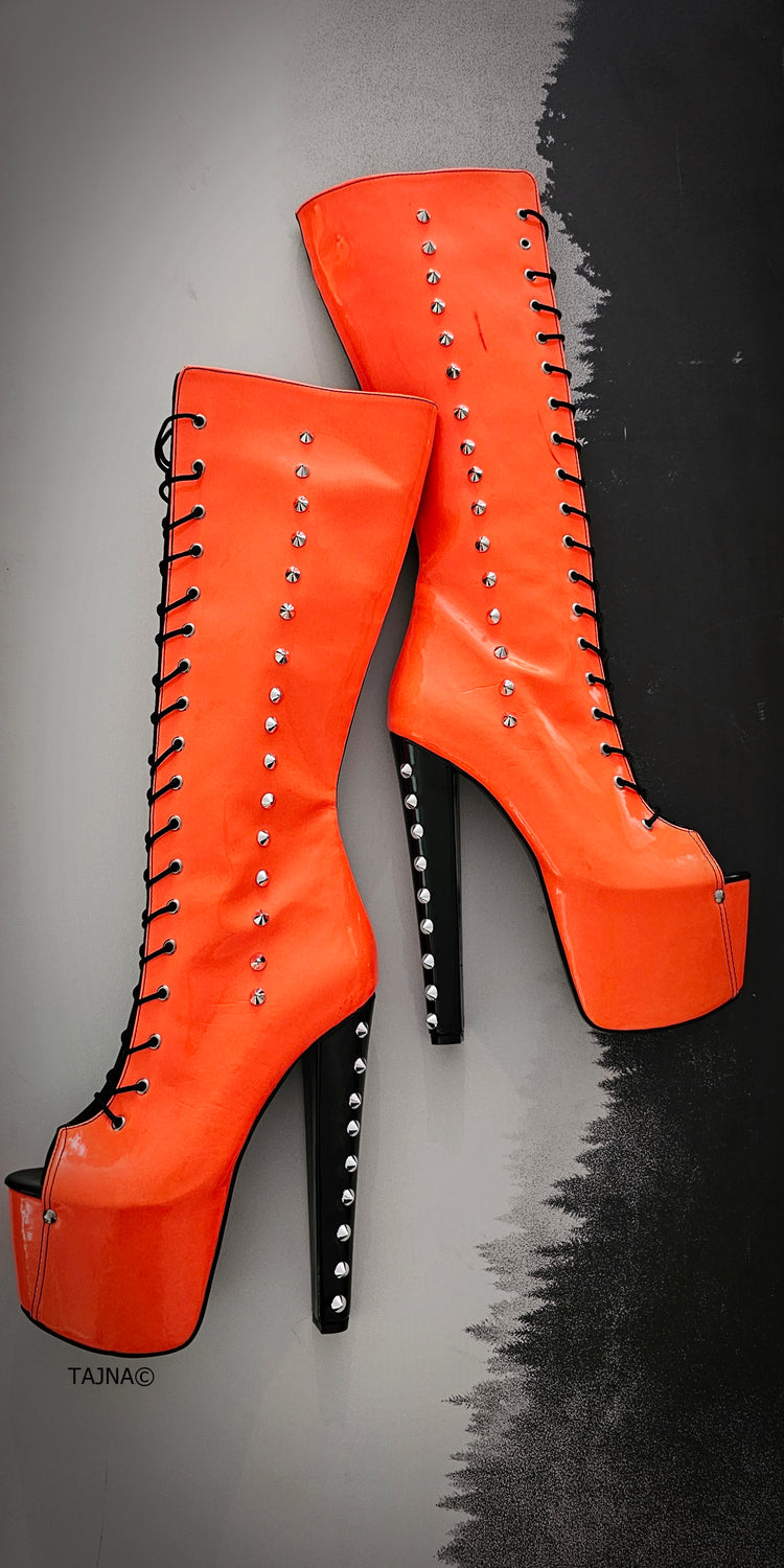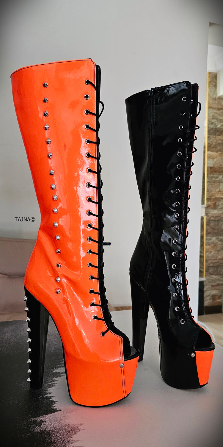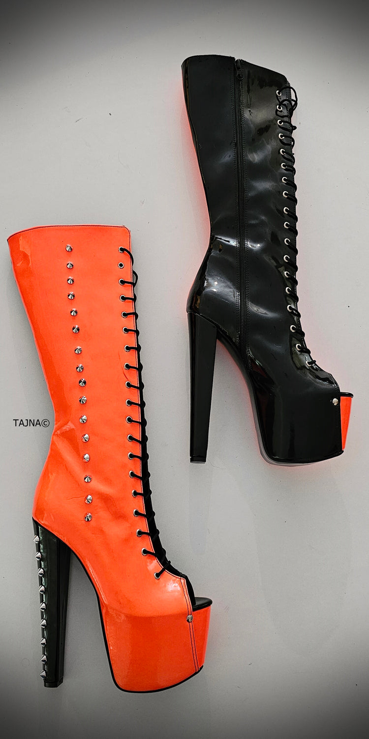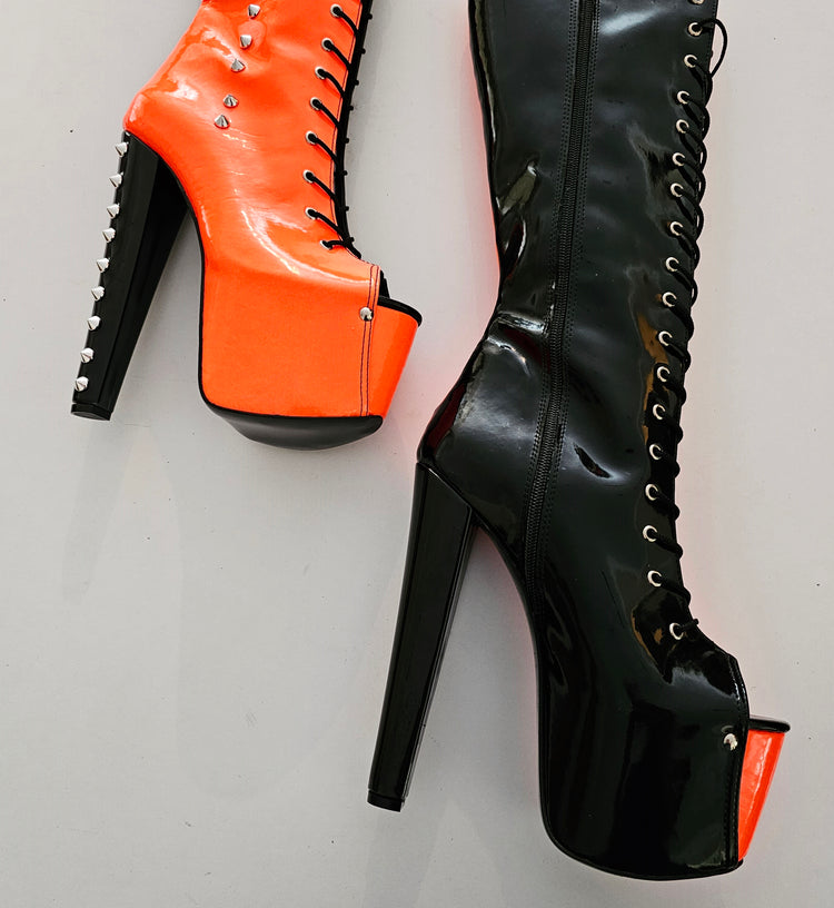 Halloween Orange Black Spiked Mid Calf Boots