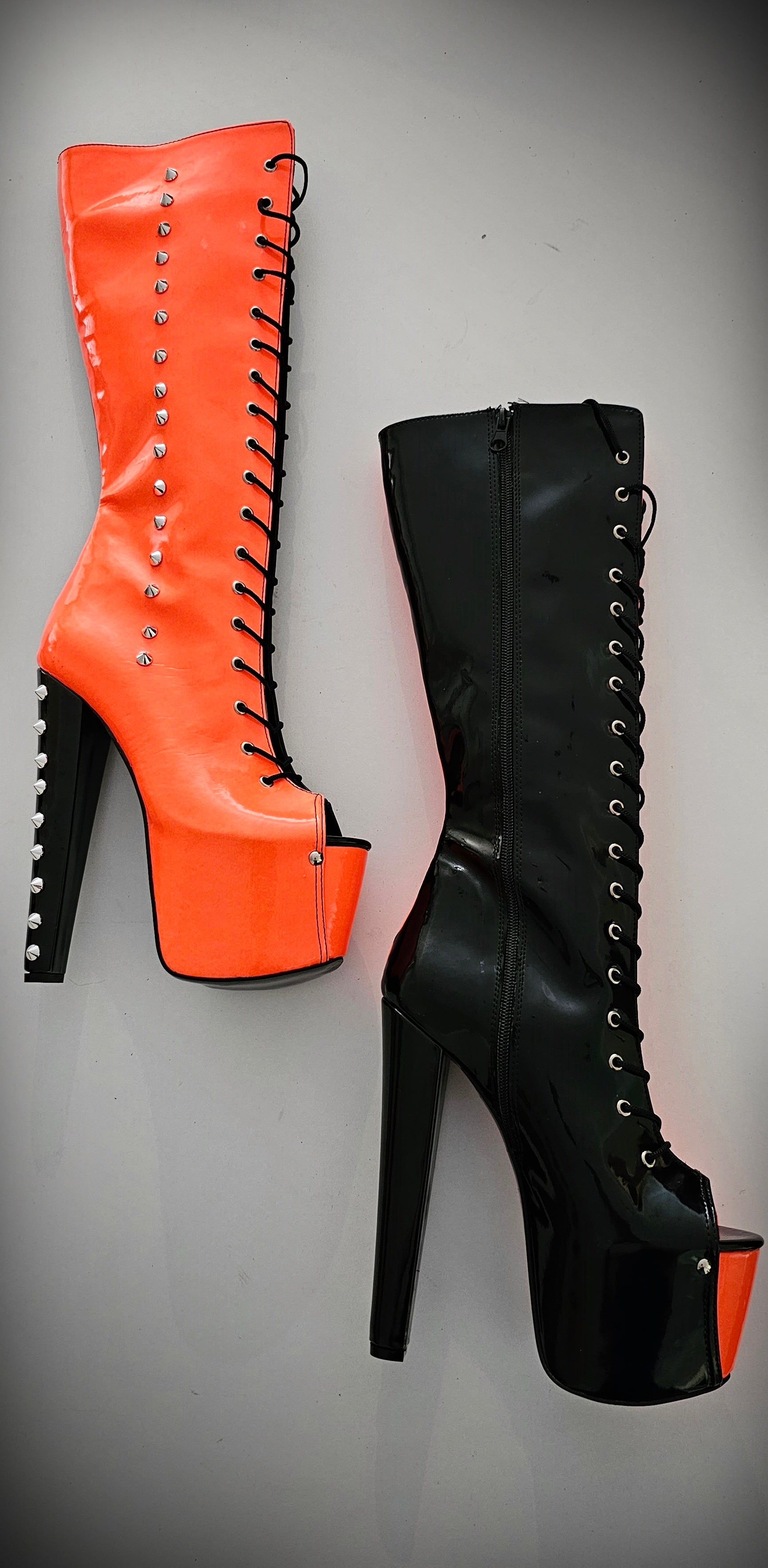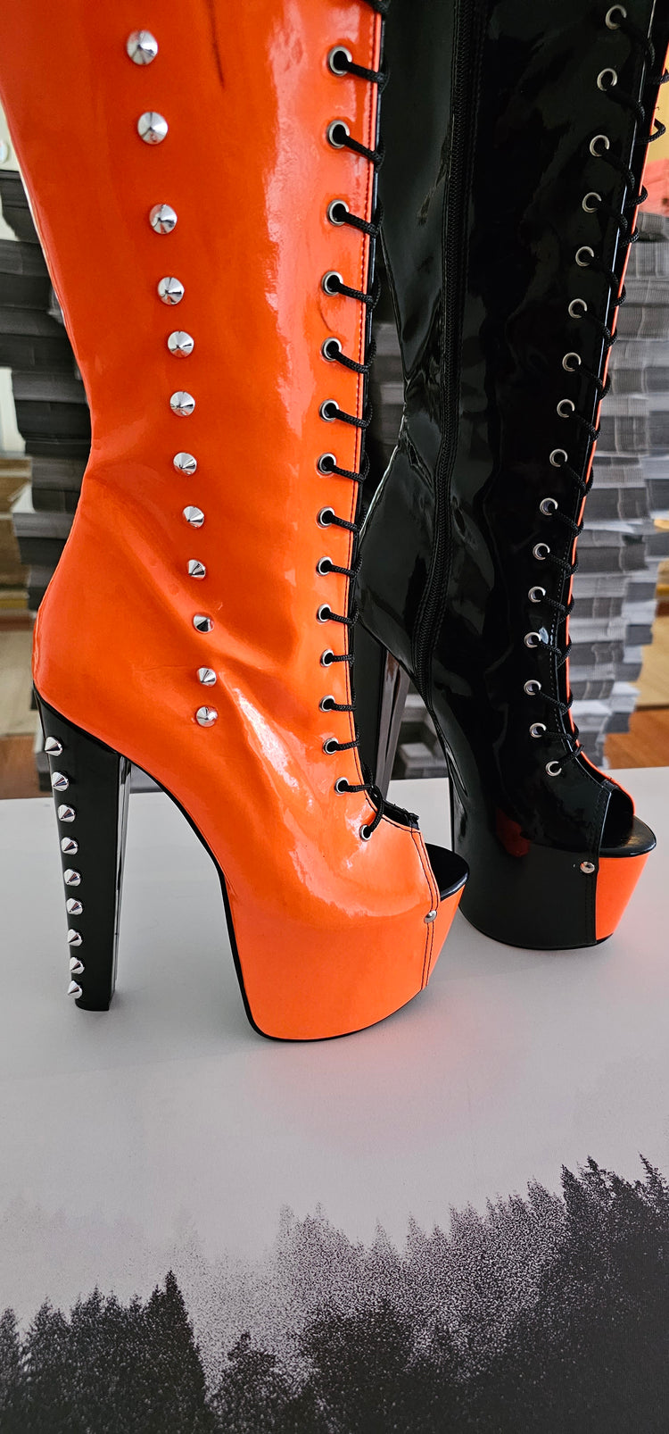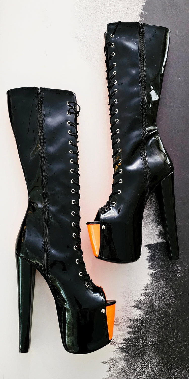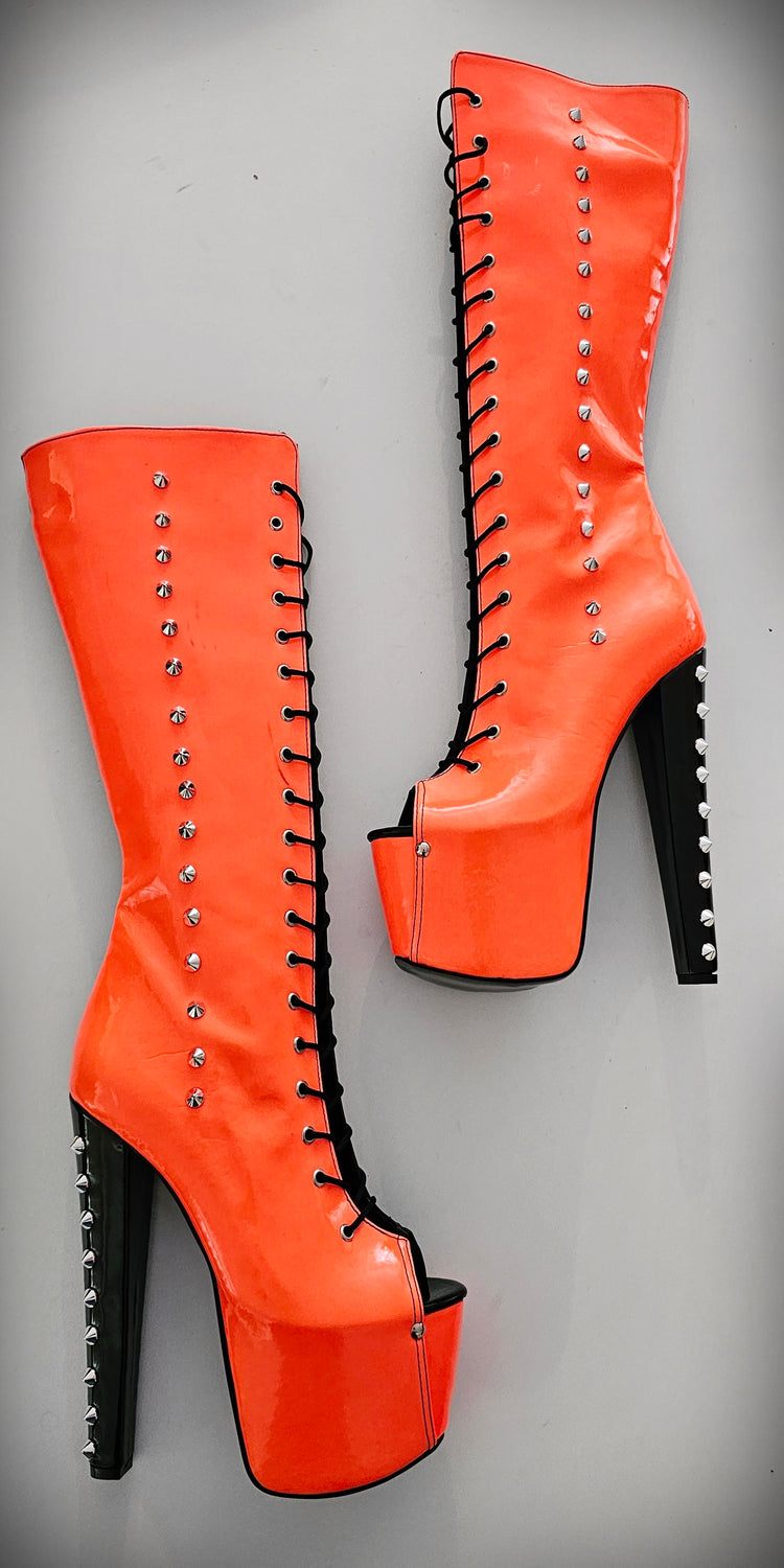 Halloween Orange Black Spiked Mid Calf Boots