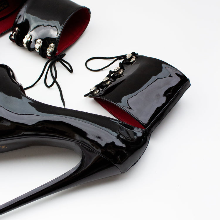 Fetish Black Gloss Ankle Belt Platform Heels