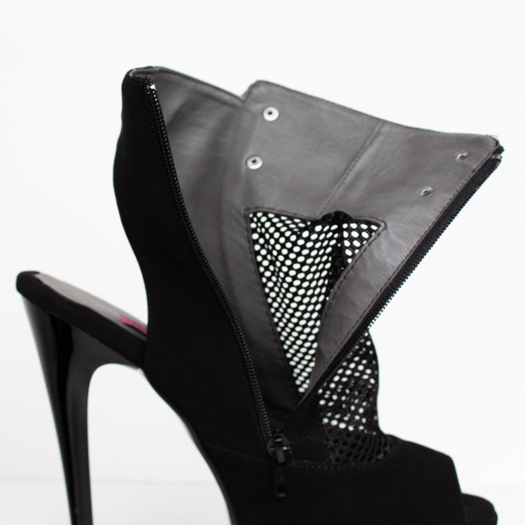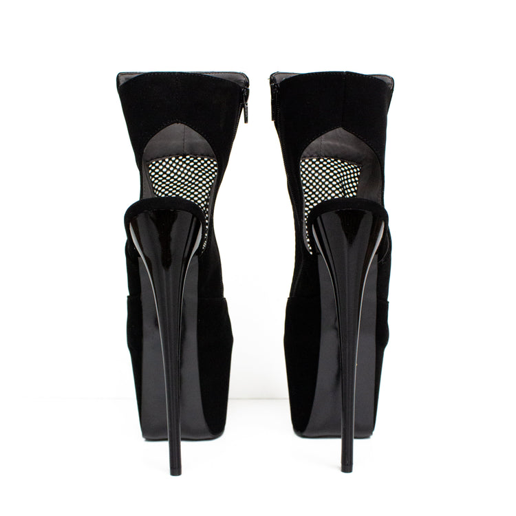 Ankle Cut Golden Fishnet Detail Black Platform Heels