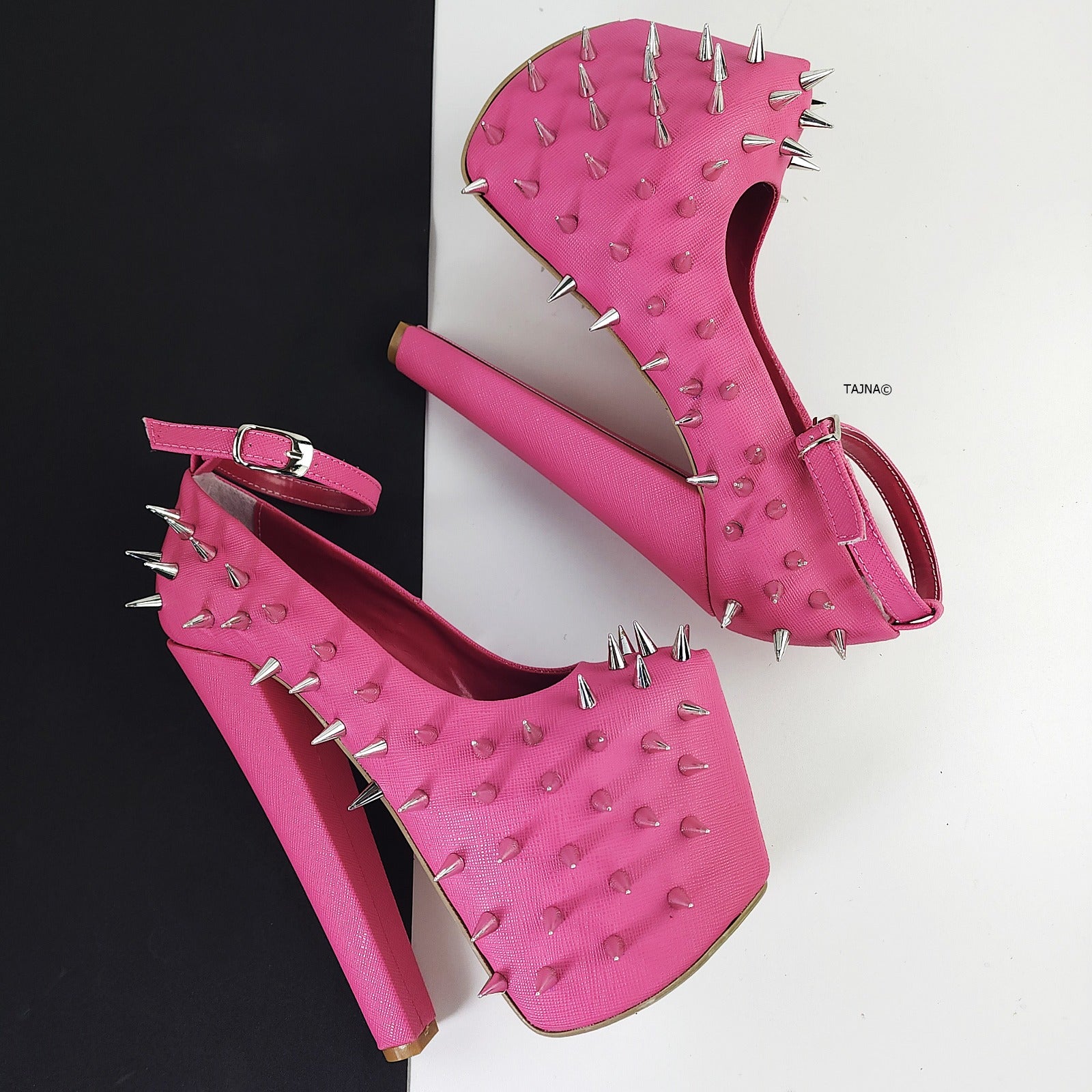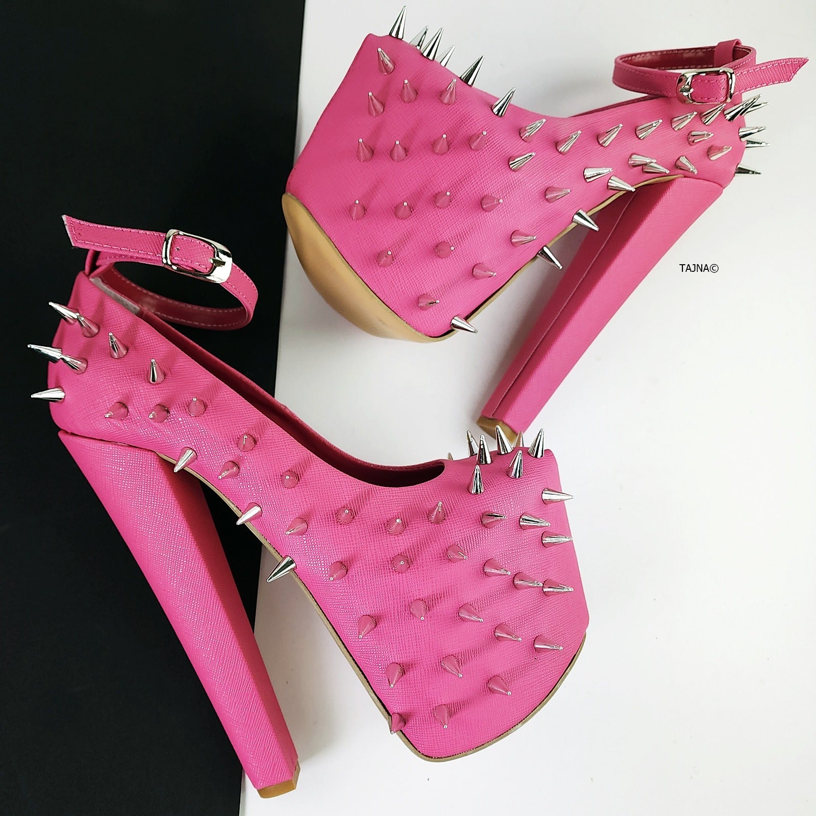 Hot Pink Spike Studded Fetish with Chunky Heels