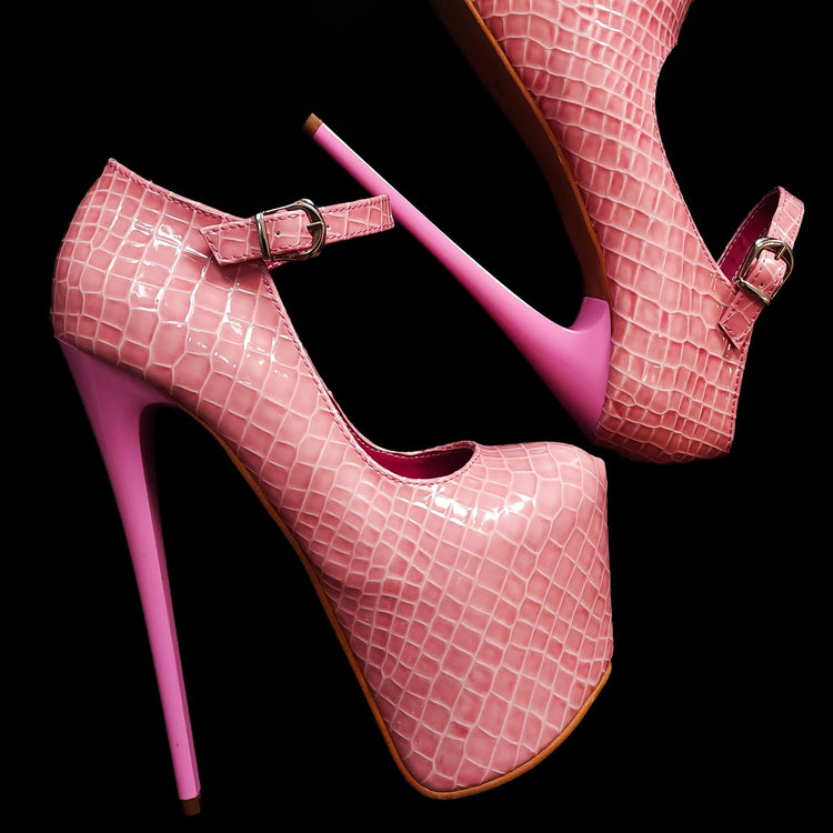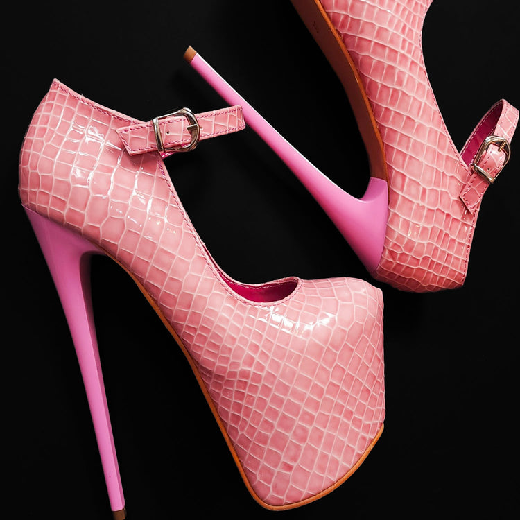 Light Pink Croco Mary Jane High Heels