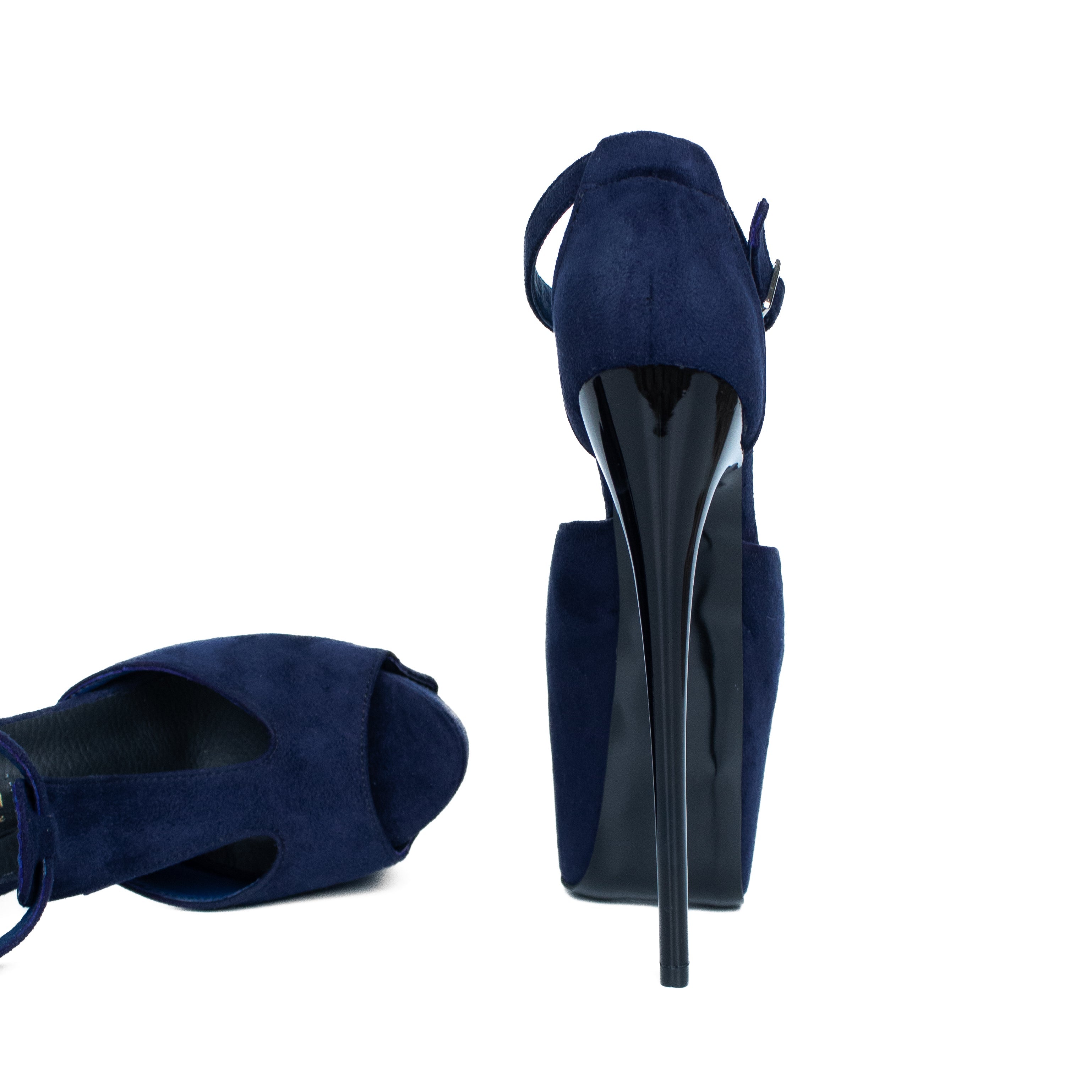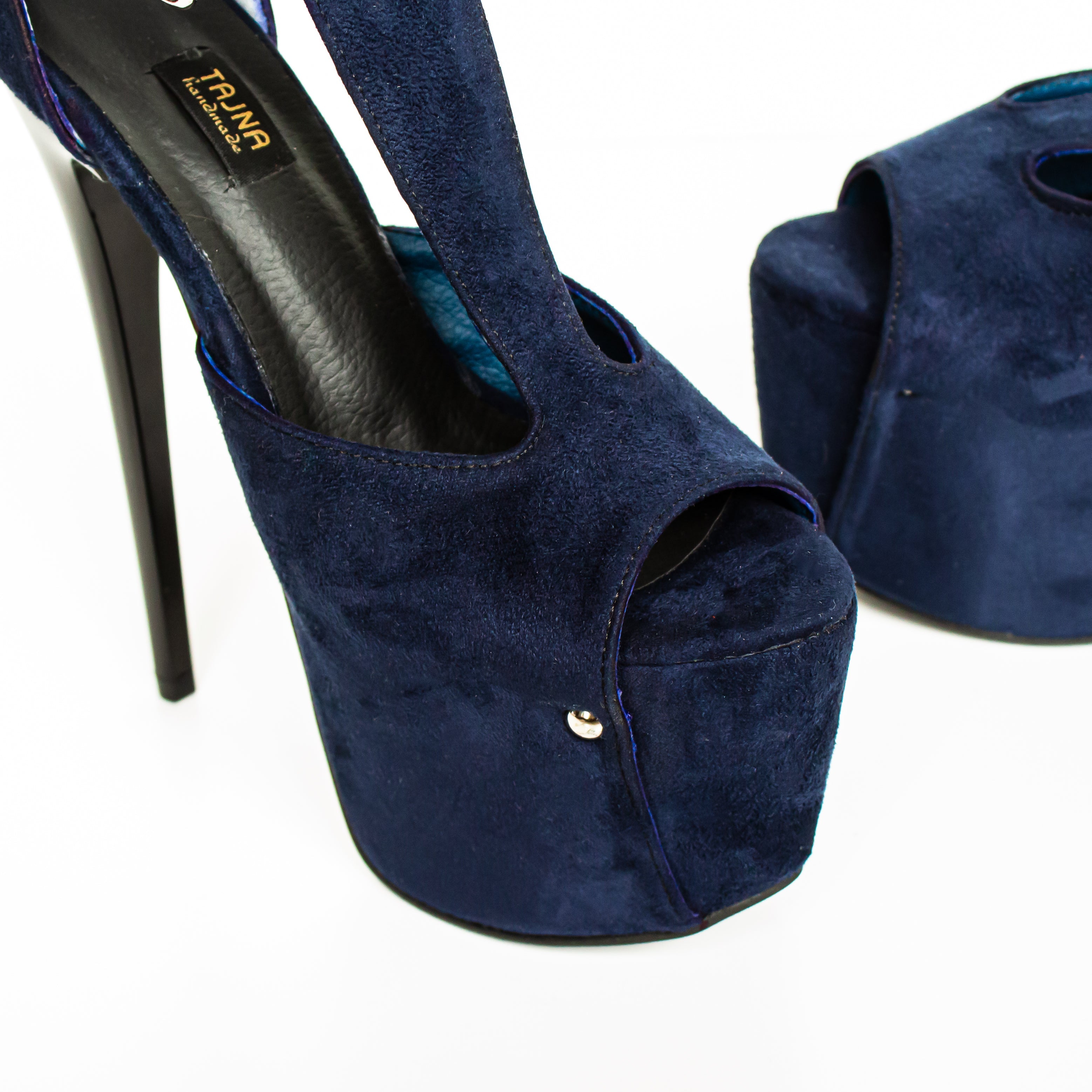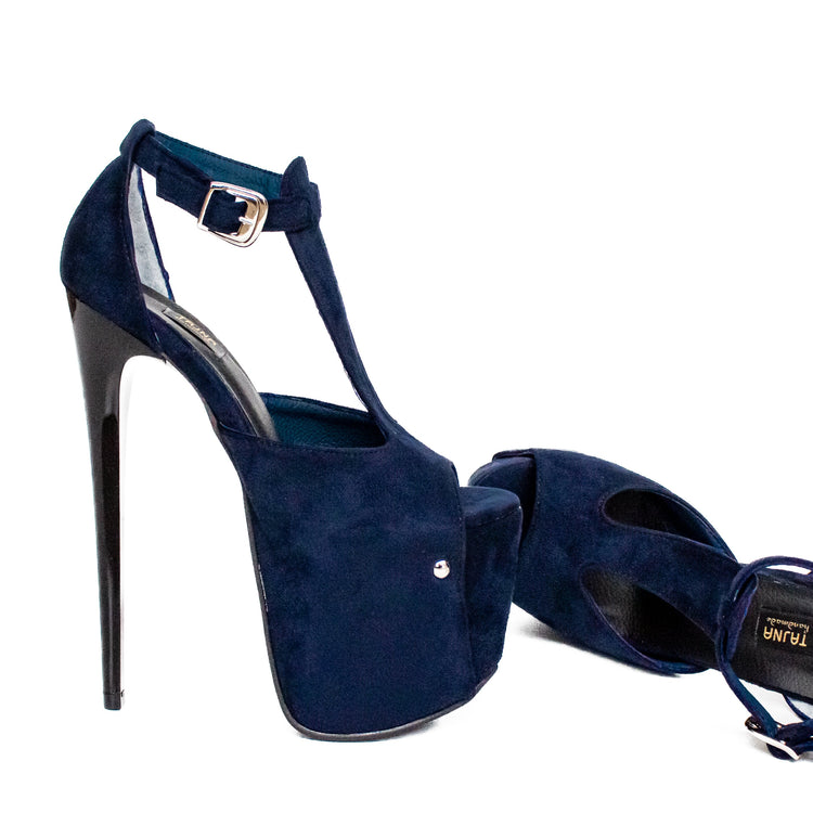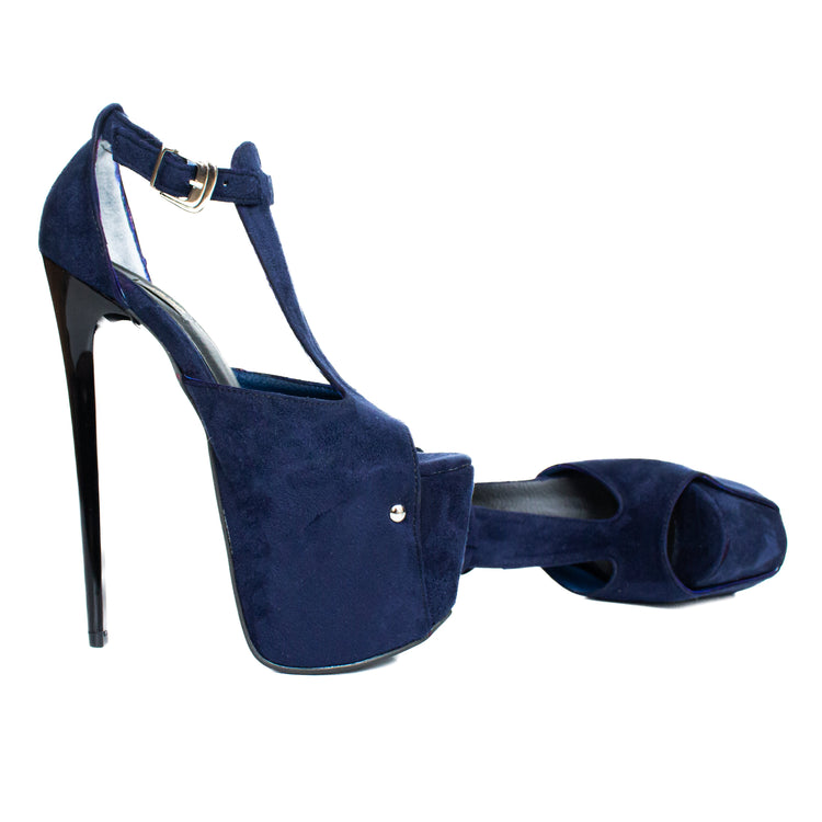 Midnight Blue T-Strap Peep Toe Platform Heels