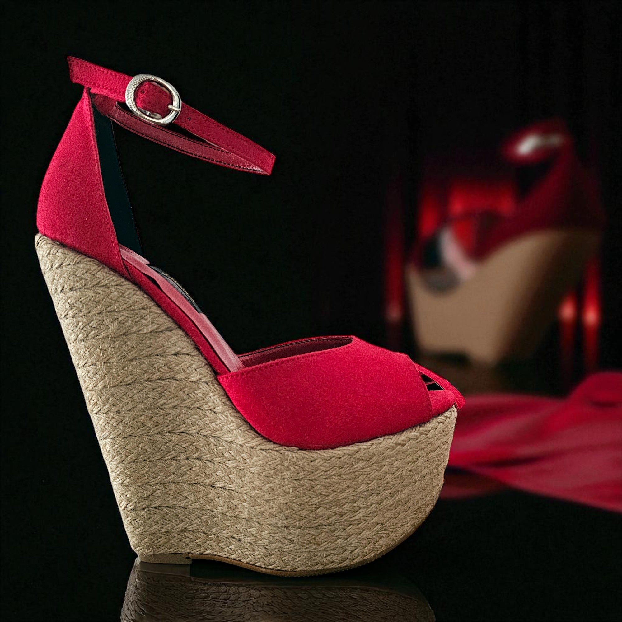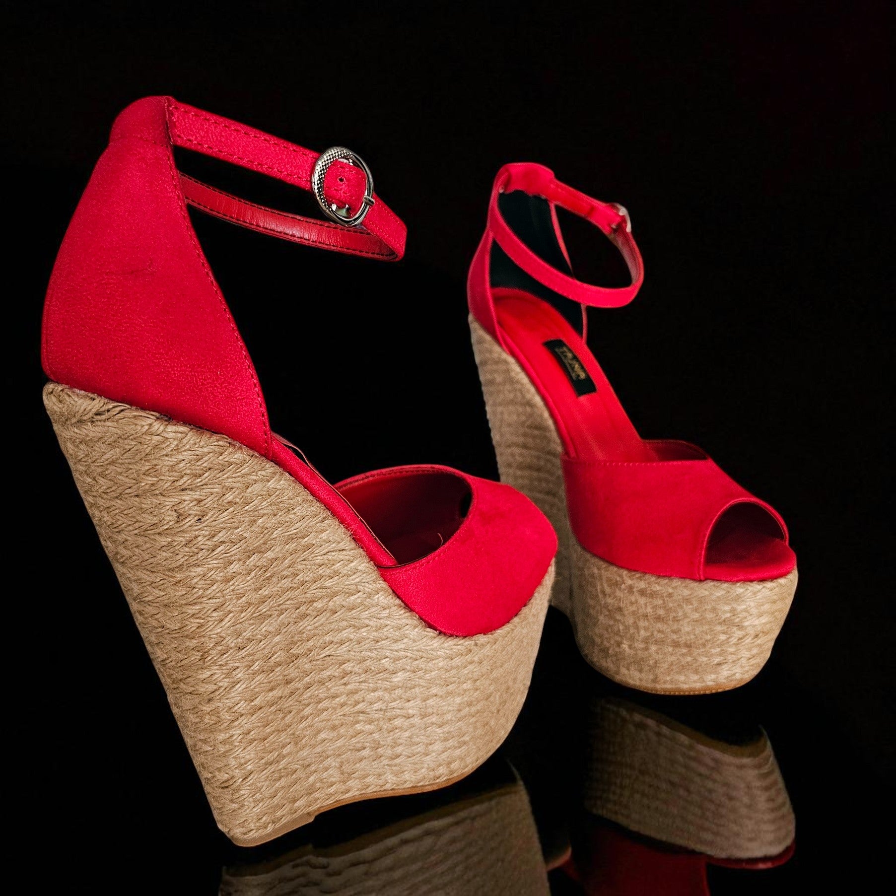 We believe in choice and catering to your desires. These exquisite red espadrille wedges can be prepared in :