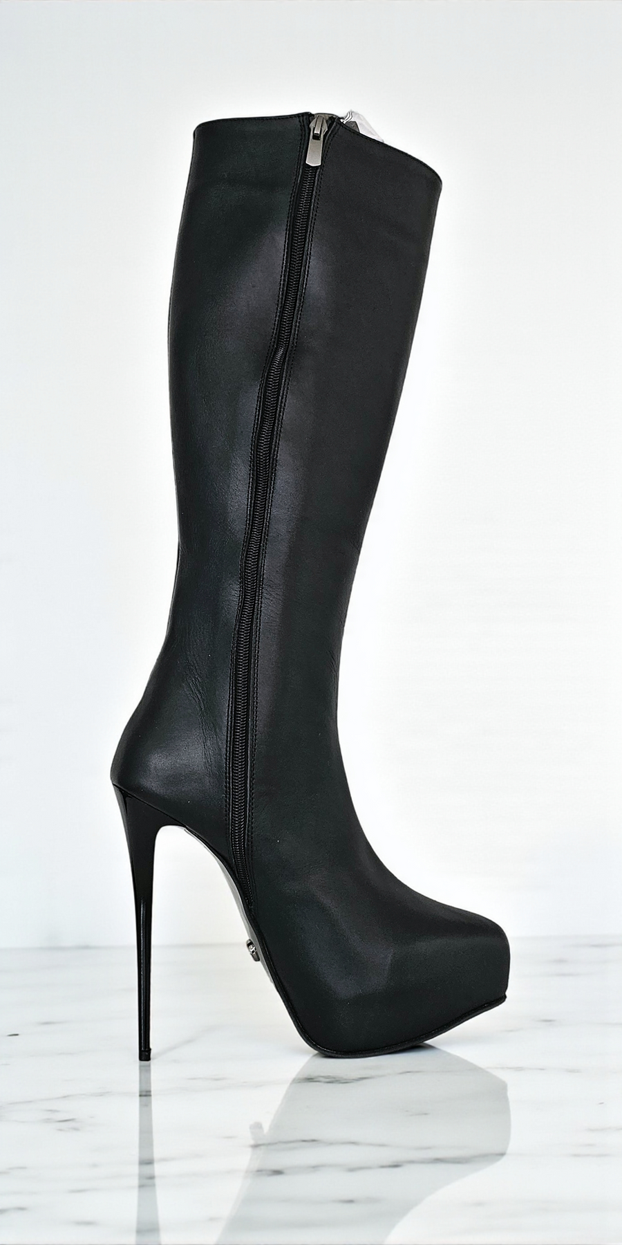 This knee-high masterpiece features a chic shaft that reaches approximately 35 cm, perfectly framing the lower leg. The full-length, exposed front zip isn't just functional—it's a striking design feature that adds an element of defiant urban cool. The architectural stiletto heel and rounded toe complete a powerful silhouette built for the spotlight.