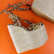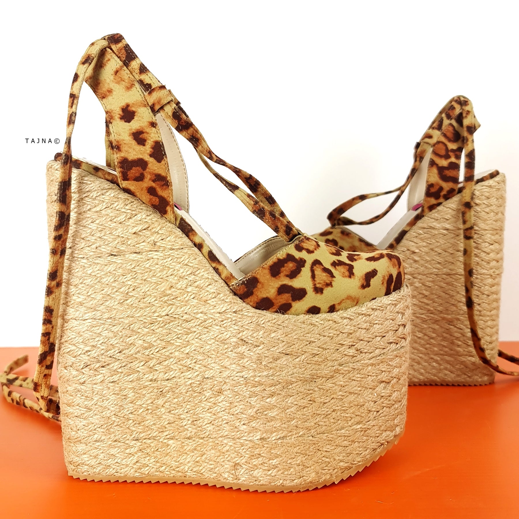 Leopard Lace Up High Heel Wedge Platform Espadrils