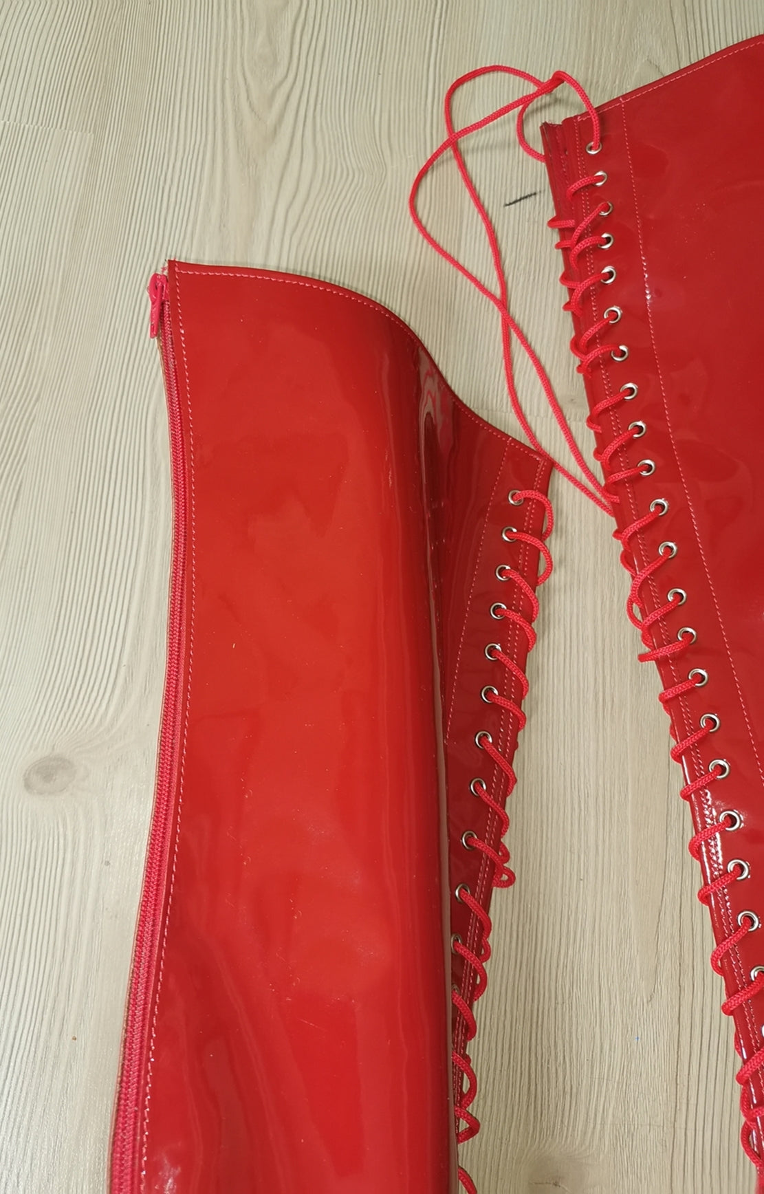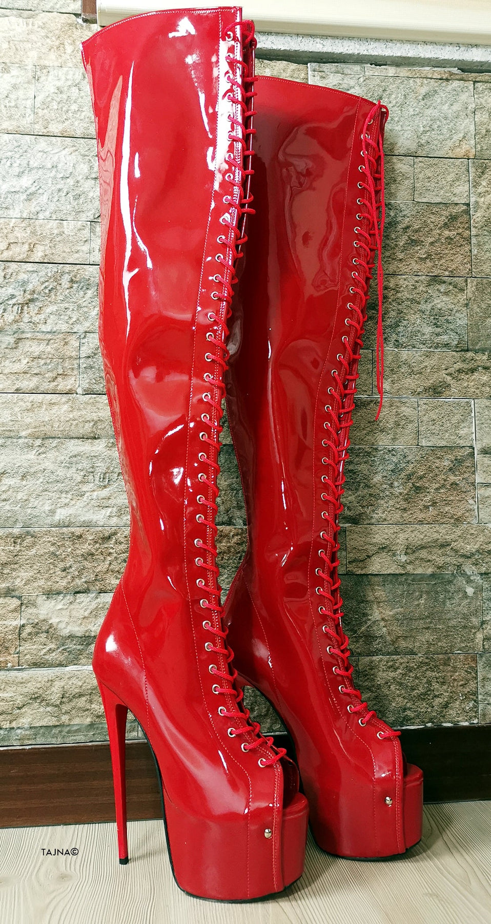 Red Patent Gladiator Lace Up Thigh High Boots